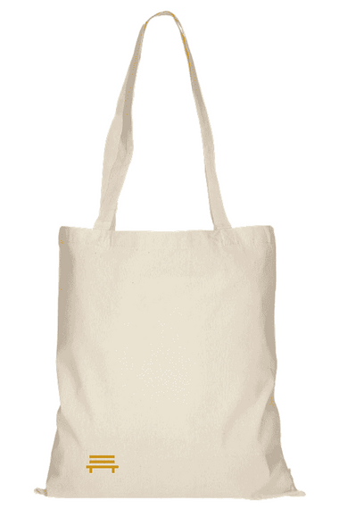 Organic cotton tote, embroidered with our iconic bench. Made in small batches in Hamburg by Fadencity — durable, minimal, and built for the journey.